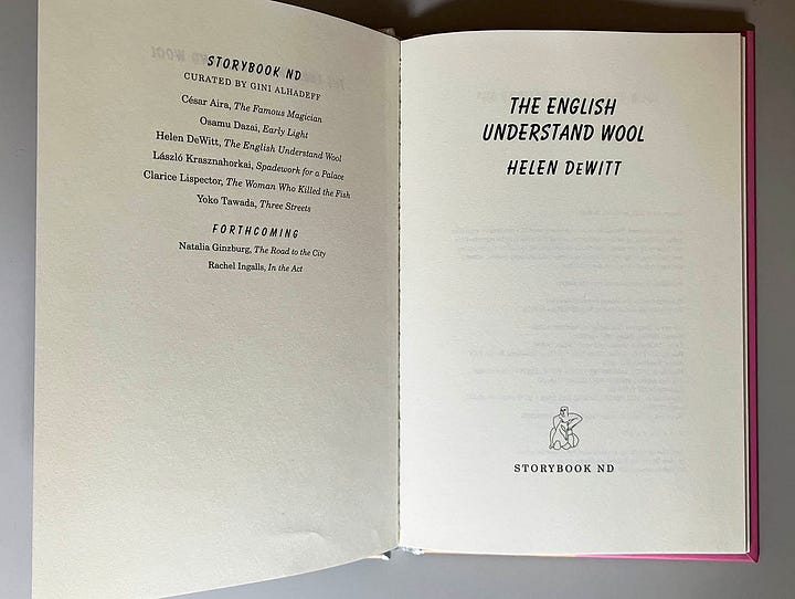 New Directions was founded in 1936 by James Laughlin (1915–97) – a distinguished editor of modernist literature, a poet himself, and an heir to a steel-company fortune. With its office in New York, New Directions is now owned by the trust that Laughlin established, and is one of the few independent English-language literary publishers of some size. The Storybook series now comprises eight books, though it seems to have stalled (the last two titles appeared in 2023). Meanwhile – the second prompt for reviving this piece – DeWitt has just published a big new novel with a younger, also determinedly independent US firm, Dalkey Archive Press. This is Your name here, co-written with Ilya Gridneff.