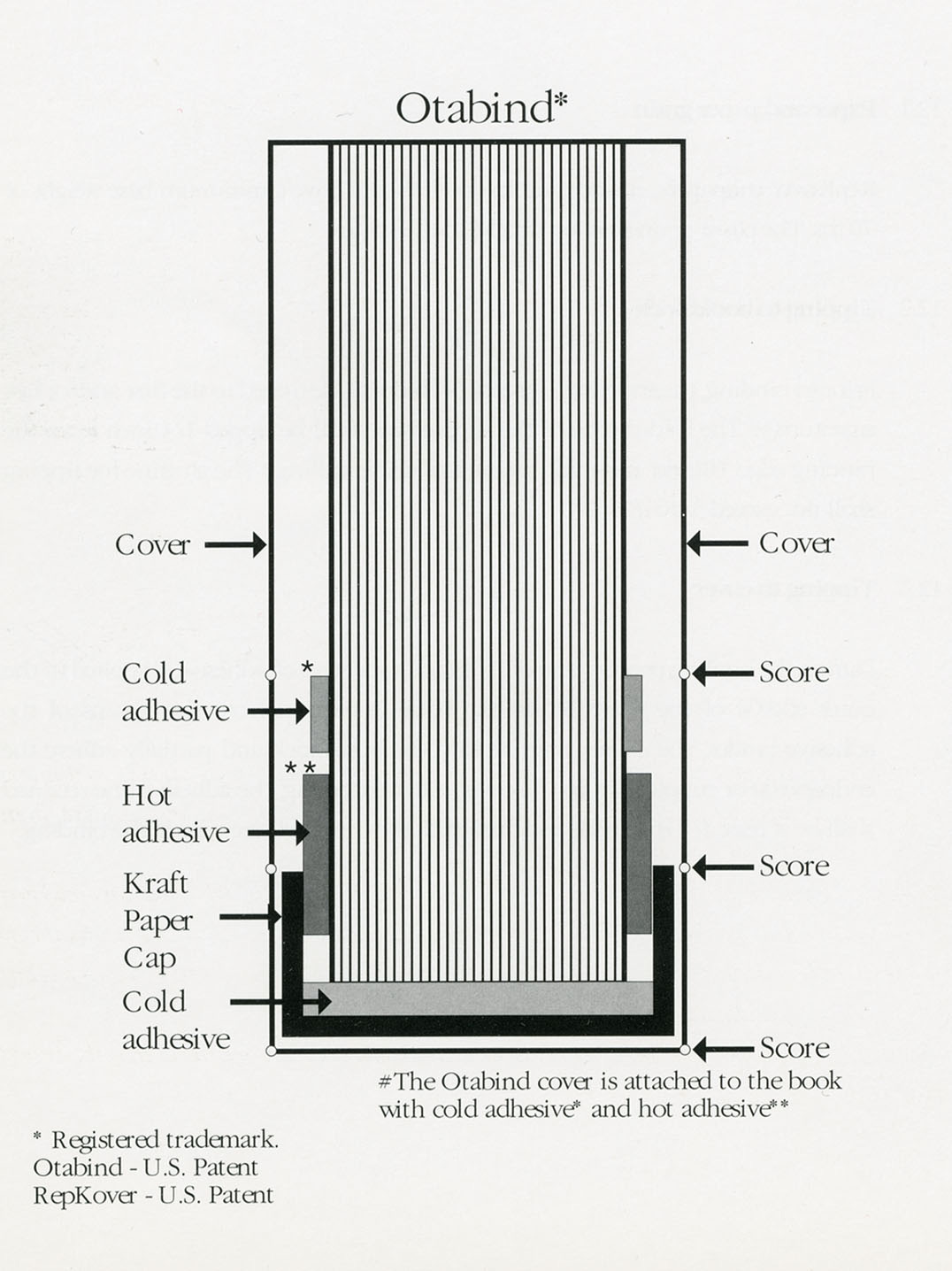 At the same time as Hexspoor was exploiting the Otabind idea, in North America a very similar method was developed, principally by Werner Rebsamen, and marketed there. This variant, which added a strip of cloth around the book-block, was given the trade name RepKover (standing for ‘reinforced paperback cover’).