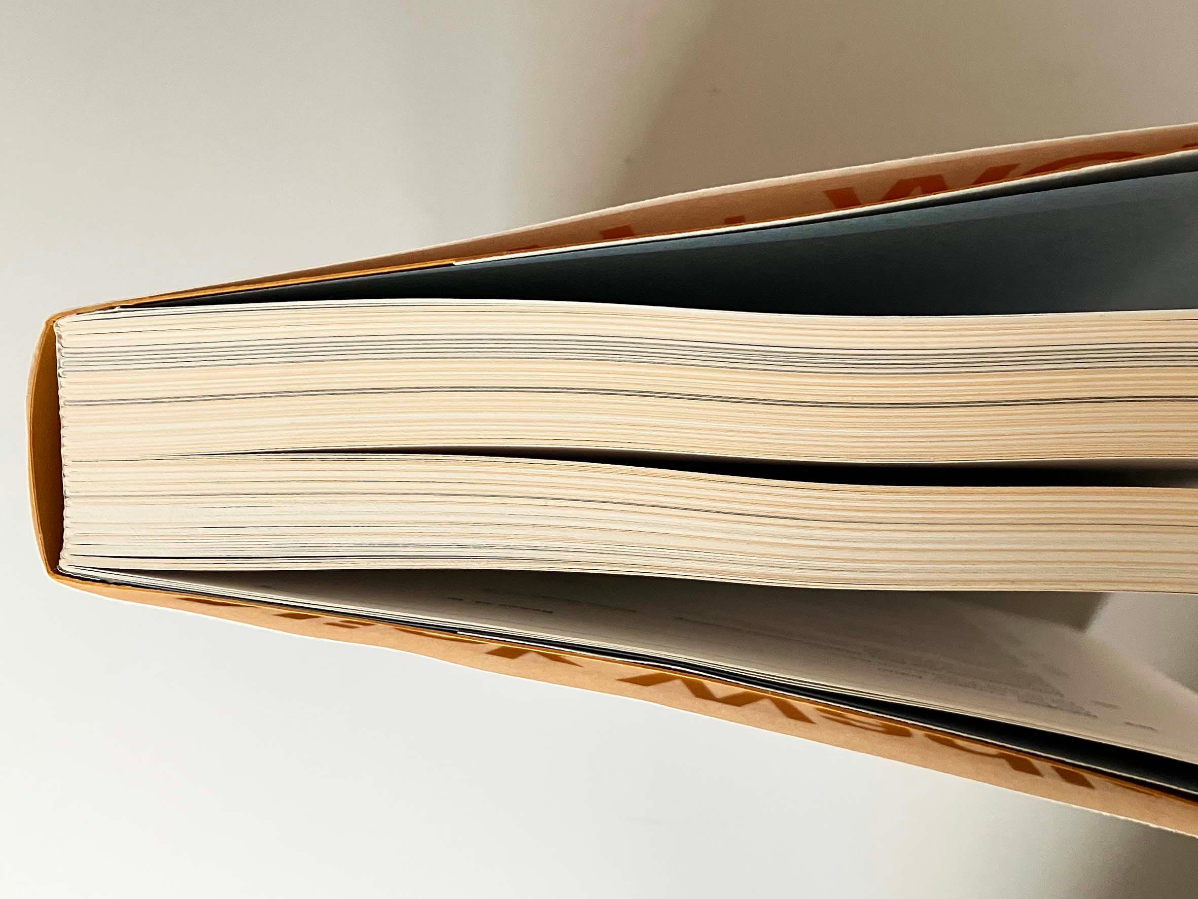 Pages are mostly bound in sections of 16, sewn, cold-glued, and then given an Otabind (in my copy the front cover has come unstuck – no matter). Like the Themerson archive book, it was made at Wilco in Amersfoort, and was designed by Pedro Cid Proença.