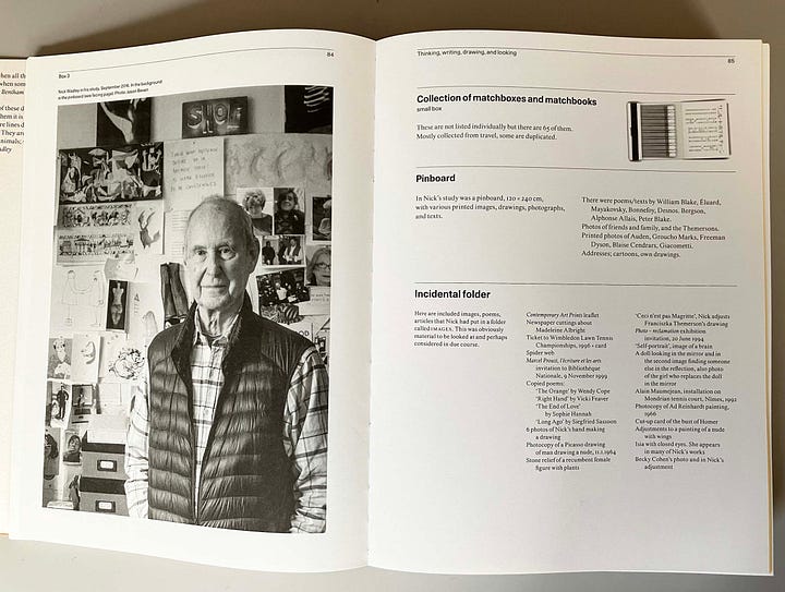 This is very clearly a labour of love. Nick Wadley was a quiet phenomenon: writer about art, and historian of art (especially the French Impressionists), a teacher (principally at Chelsea School of Art), a painter, and – increasingly in his later life – a drawer. As his funeral announcement in the Guardian said, he was ‘a lovely man’. He and Jasia Reichardt married in 2005. The book is published by the Waterlily Press, an imprint that Nick established for some of his own books of drawings. So it was written and published by its editor, with complete control over the contents. My copy was a gift from her.